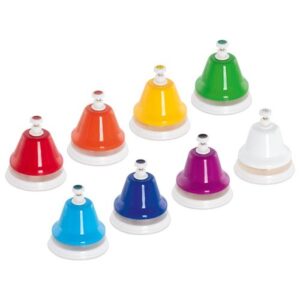 rytmu. Každý zvonek má svou barvu a odpovídá jednomu tónu stupnice, takže si děti mohou postupně zkoušet jednoduché melodie nebo jen volně experimentovat se zvukem. Kovové zvonky mají příjemně silný, čistý tón a díky plastovému držátku se dobře drží i menším ručkám. Ideální jako první hudební seznámení pro malé muzikanty.