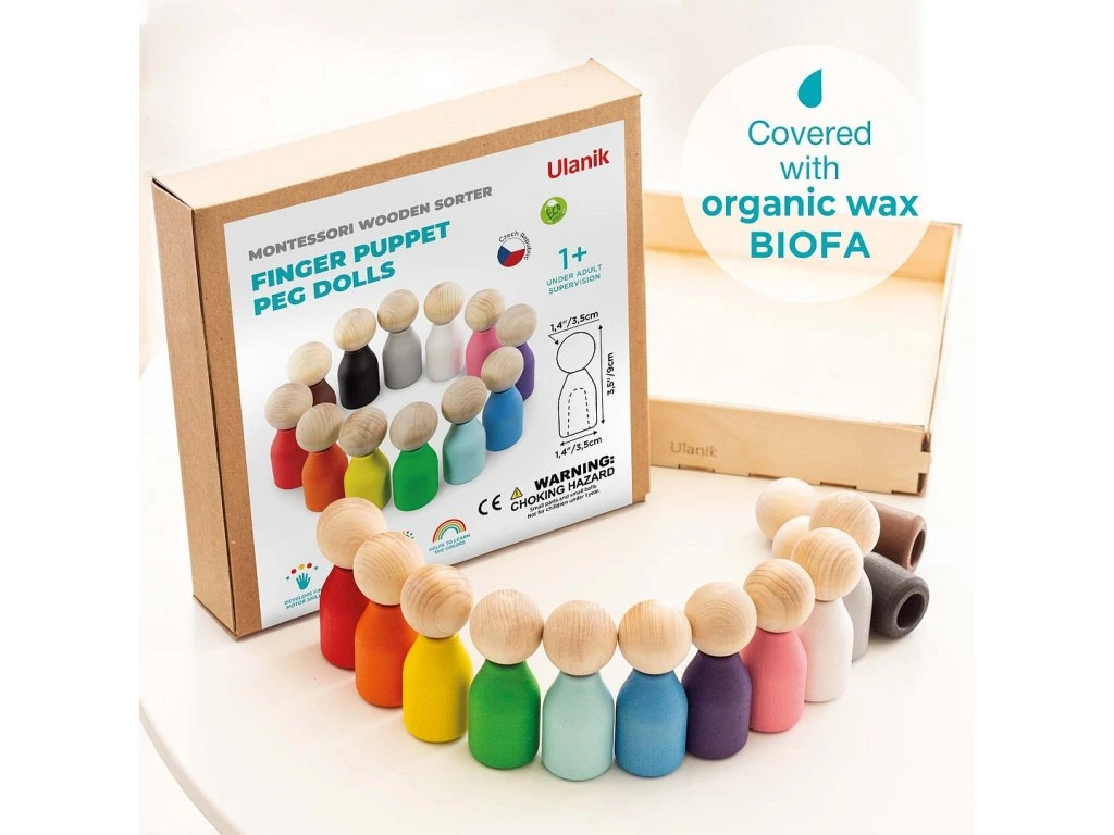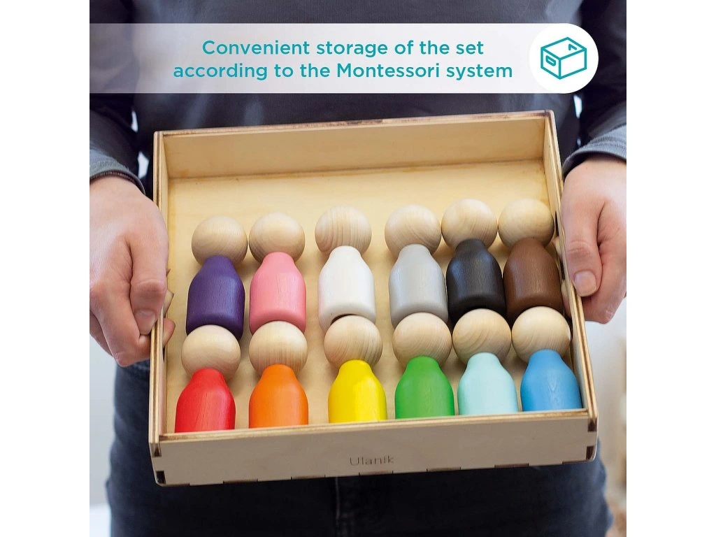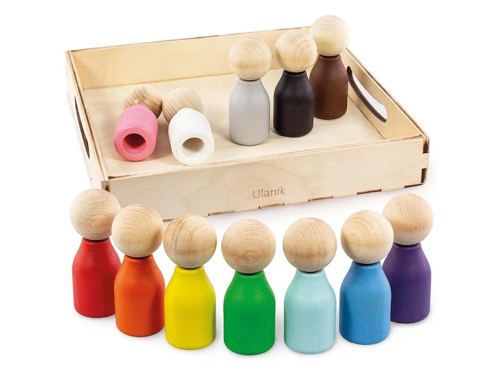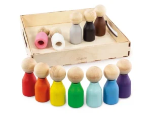 Starší děti mohou panáčky využít ve svých fantazijních hrách – jako obyvatele města, rodinu nebo postavičky do příběhů. Tác poslouží jako skvělá pracovní plocha i jako podklad pro různé montessori aktivity (počítání, řazení, hry s barvami).