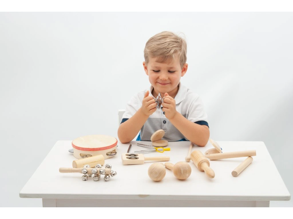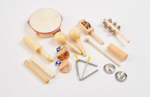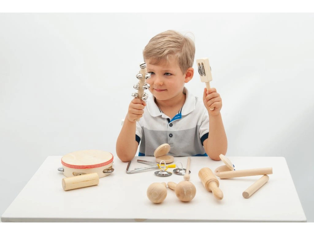 Tato pestrá sada obsahuje 16 různých rytmických nástrojů – maracas, kastaněty, tamburínu, triangl s