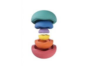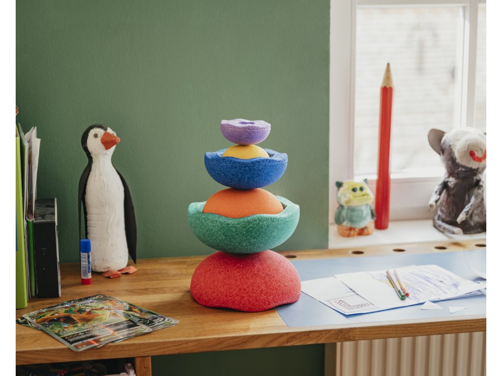 Stapelstein Inside je modulární hračka inspirovaná ruskou panenkou Matrjoška – jednotlivé vrstvy do sebe přesně zapadají. Děti mohou vrstvy skládat, kombinovat s balančními kameny nebo používat samostatně jako hrací objekty. Materiál je ekologický EPP (bez toxických přísad), lehký a odolný, ideální i pro hru ve vodě (např. v koupelně).